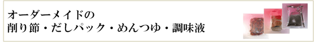 節辰商店は削り節、だしパック、めんつゆ・液体だしを小ロットからオーダーメイドしています。対応する魚種・製作範囲・納品形態などをご紹介します。圧倒的な小ロット対応が強みです。